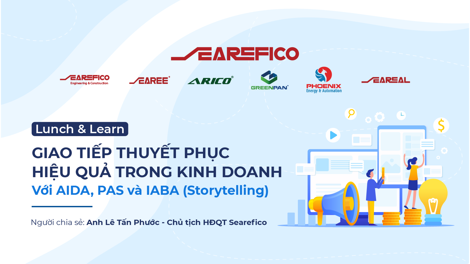 Trưa 25.09, chương trình Lunch & Learn tiếp tục được tổ chức với chủ đề “Giao tiếp thuyết phục hiệu quả trong kinh doanh”. Đây là chương trình học tập được Searefico Group tổ chức thường xuyên, và đặc biệt hôm nay, các Searefiers có cơ hội lắng nghe chia sẻ trực tiếp từ Chủ…
