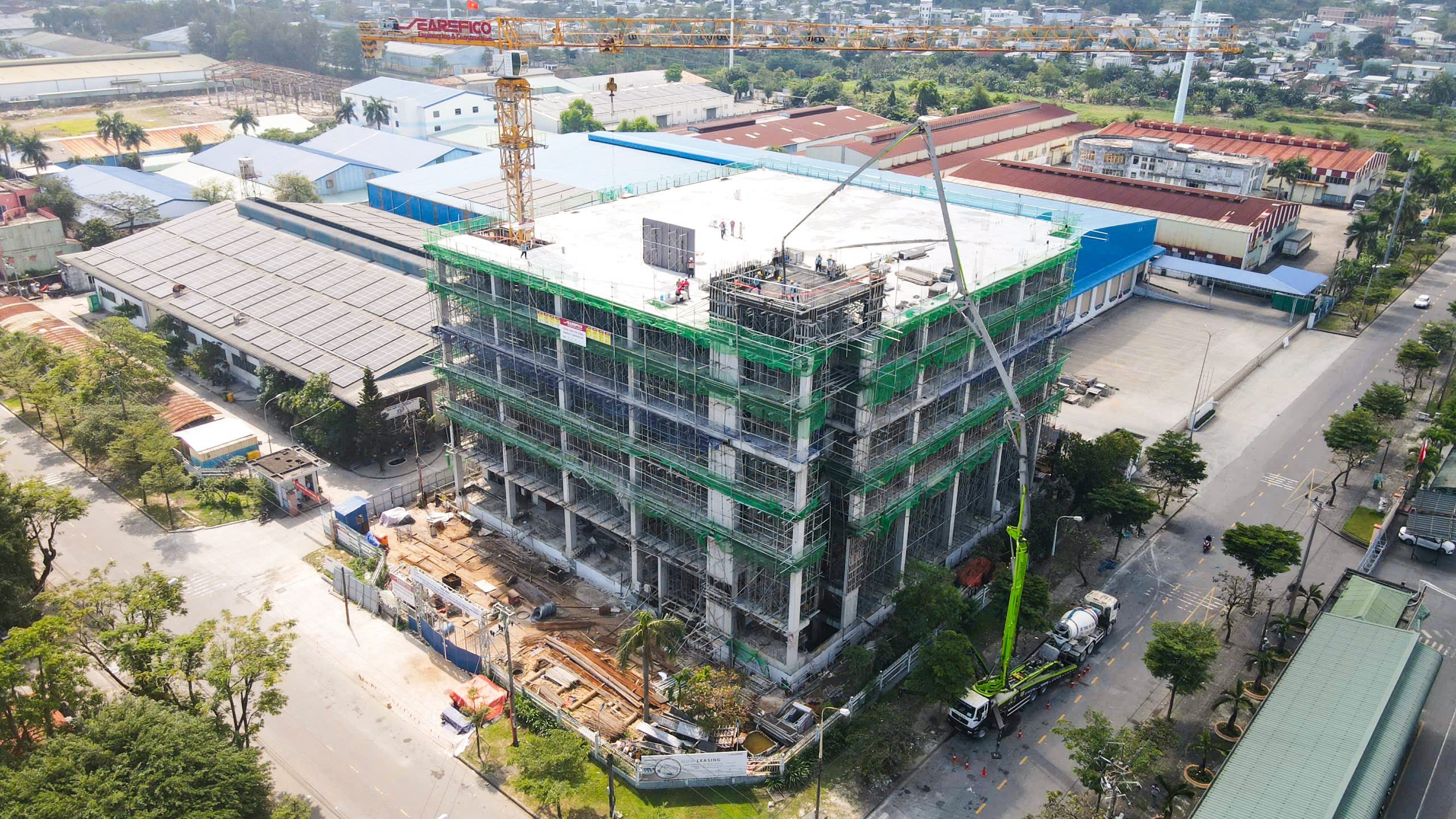 Riêng phần sàn tum, đội ngũ đã phải chạy đua với thời tiết mưa tại miền Trung. Để không làm đứt gãy tiến độ, đội ngũ Searefico E&C chủ động bám sát diễn biến thời tiết để đưa phần mái về đích đúng hẹn, vừa đảm bảo tiến độ, vừa giữ vững các tiêu chuẩn khắt khe về an toàn và chất lượng cho một công trình cao tầng.