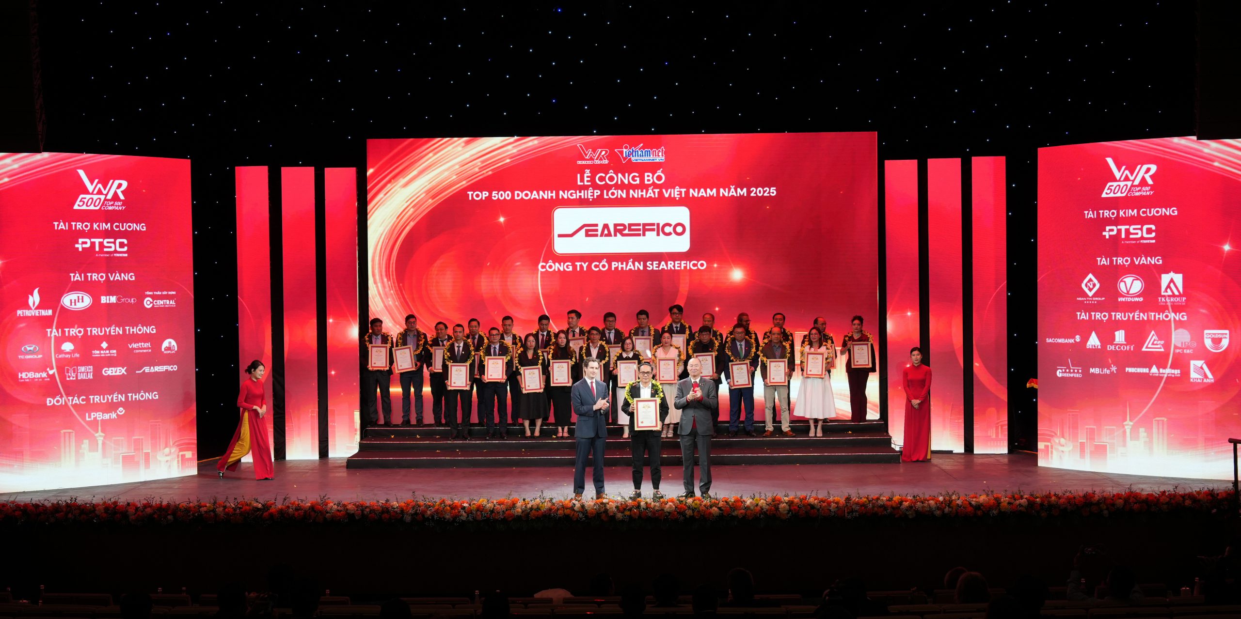 Thành quả này có được nhờ sự đóng góp của đội ngũ nhân sự chất lượng cao tại các đơn vị thành viên, giúp Searefico tiếp tục nằm trong “Top 100 Nơi làm việc tốt nhất Việt Nam® năm 2025”. Danh hiệu “Nhà thầu xây dựng chất lượng, uy tín hàng đầu Việt Nam năm 2025” đã củng cố vững chắc sự dẫn dắt tiên phong của Công ty mẹ trên thị trường. Theo khảo sát của Vietnam Report, hoạt động sản xuất – kinh doanh của các doanh nghiệp VNR500 đã có sự cải thiện đáng kể về doanh thu, lợi nhuận, đơn hàng và nhân sự trong năm qua. Bước sang năm 2026, triển vọng phát triển đang mở ra rõ nét hơn, yêu cầu doanh nghiệp phải tăng tốc chuyển đổi mô hình tăng trưởng theo hướng hiệu quả và bền vững.
