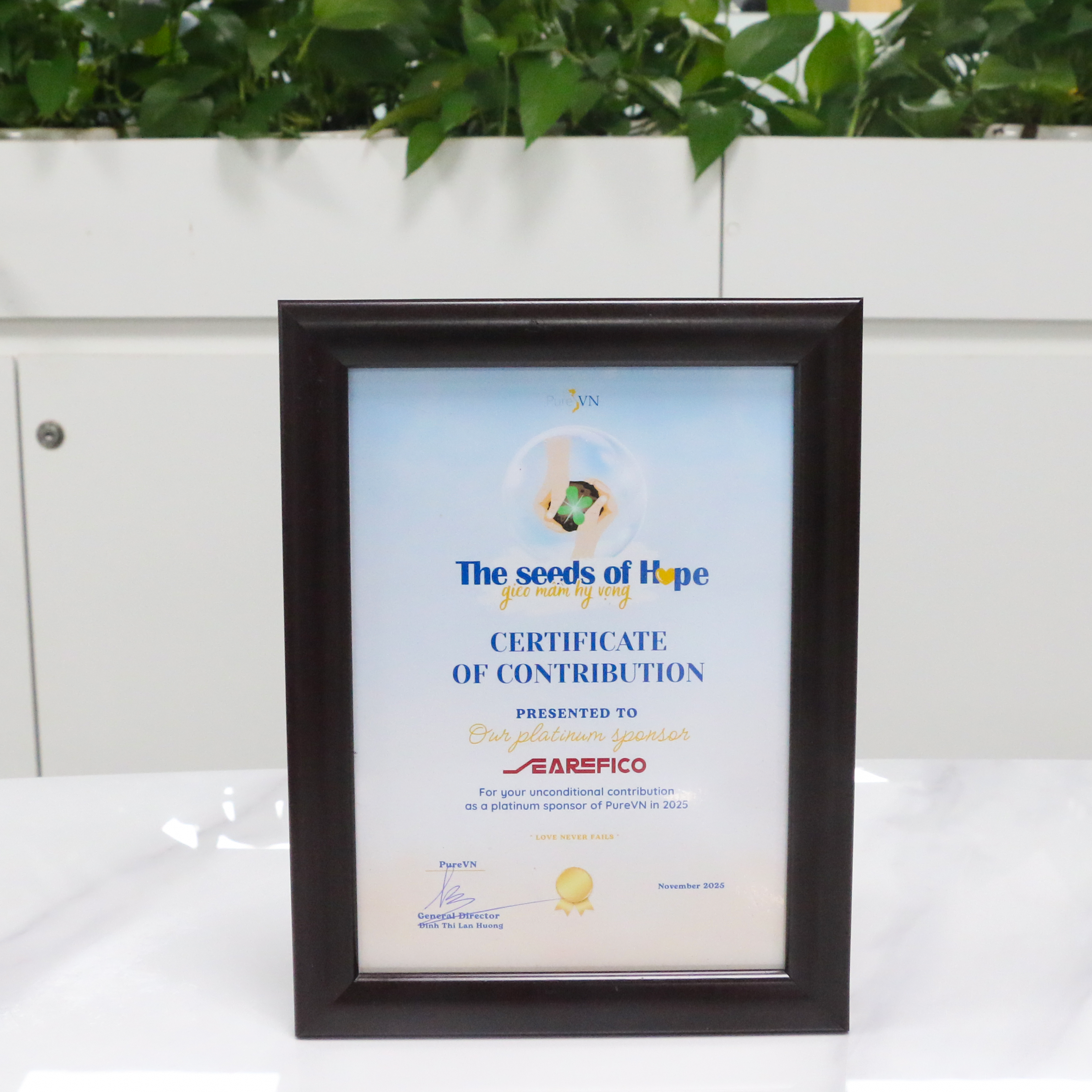 Tại Searefico, bên cạnh nỗ lực phát triển kinh doanh bền vững, chúng tôi luôn tâm niệm rằng tinh thần “cho đi” phải được nuôi dưỡng và tiếp nối, như một phần không thể thiếu của trách nhiệm doanh nghiệp. Chính vì lẽ đó, Searefico tự hào là đối tác đồng hành dài hạn cùng PureVN và Dự án Nhà Chuyển Tiếp (NCT) – một sáng kiến nhân văn nhằm kiến tạo môi trường gia đình, giáo dục và định hướng tương lai cho thanh niên mồ côi sau tuổi bảo trợ xã hội.